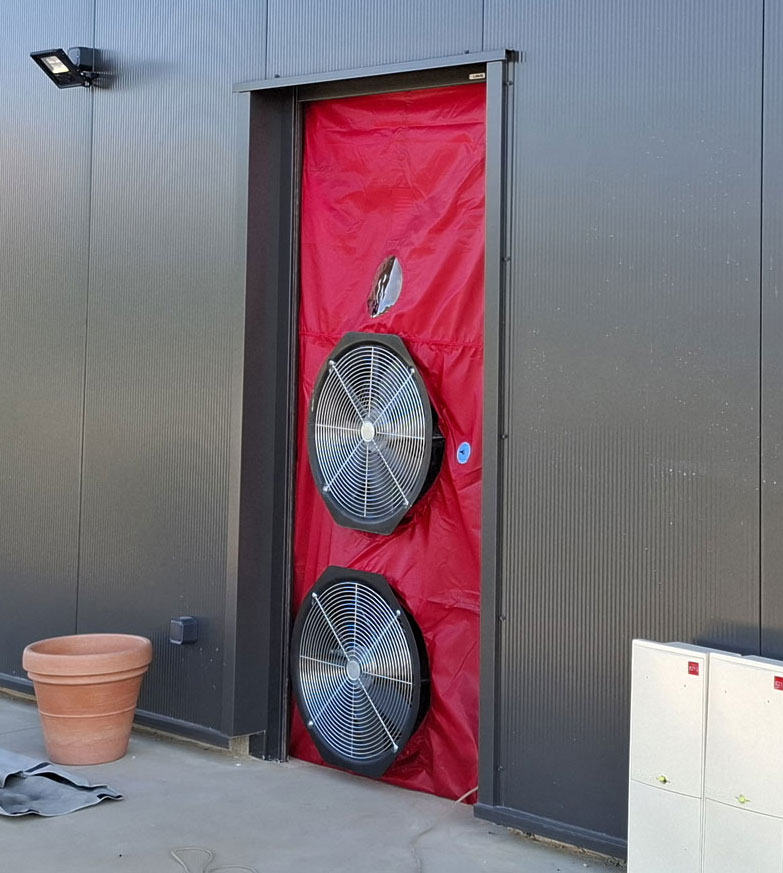 Nos tests d’infiltrométrie (blower door test) sont réalisés selon les normes en vigueur (RE2020 / RT2012), avec rapport de mesures à l’appui. Ils permettent de détecter les infiltrations d’air parasites pour améliorer l’étanchéité du bâtiment.